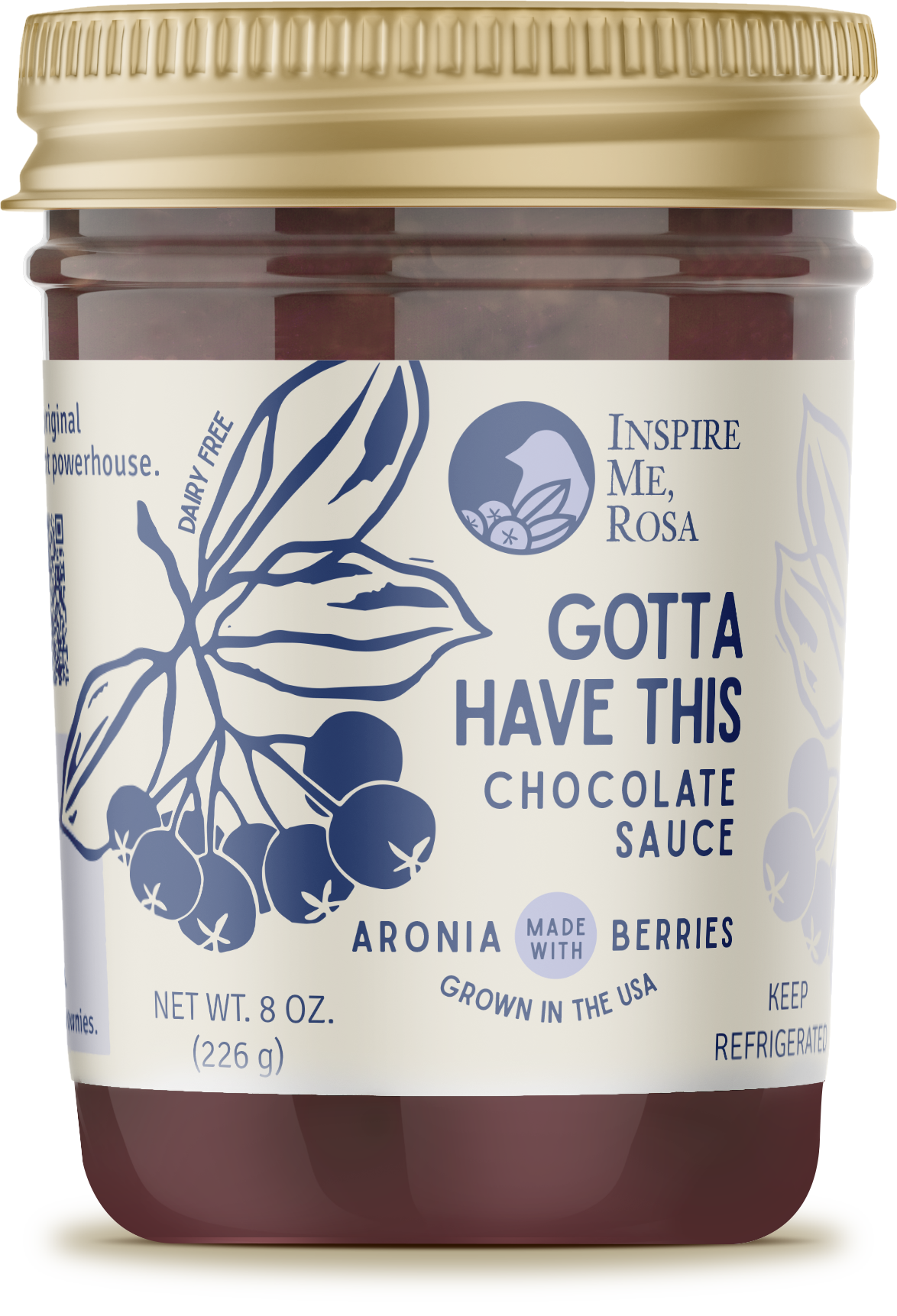 Inspire Me, Rosa’s original dairy-free chocolate sauce. An antioxidant powerhouse packed with goodness and sweetness. Enjoy this sauce over fruit or ice cream. Add to coffee milk or smoothies. Dip pretzels, biscotti or granola bars. Spread over croissants, crackers or brownies. Or enjoy right off the spoon!
